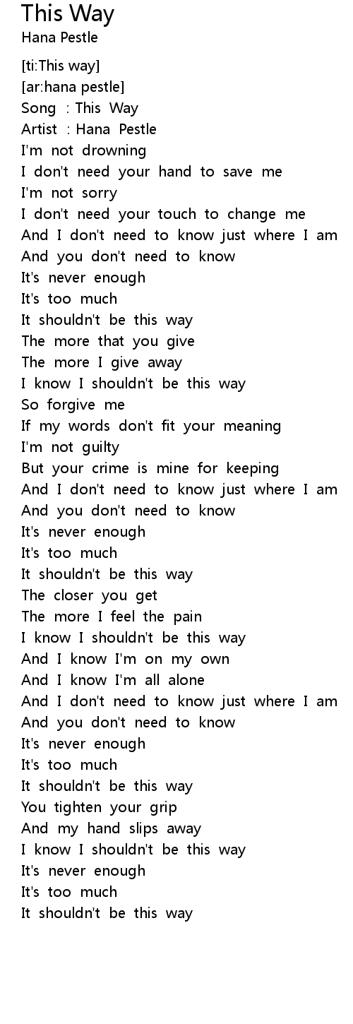 | [02:22.39] | I know I shouldn' t be this way |