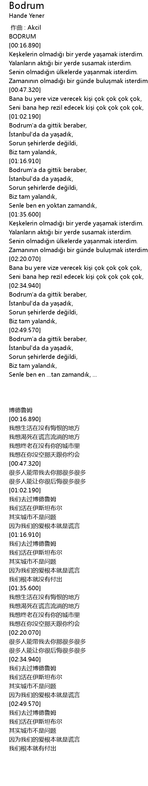| [02:50.110] | Bodrum'a da gittik beraber, |