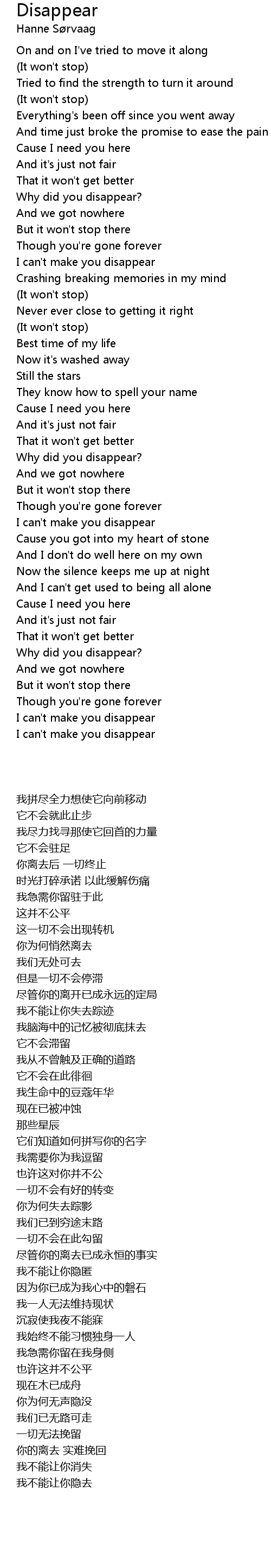 I can't make you disappear |