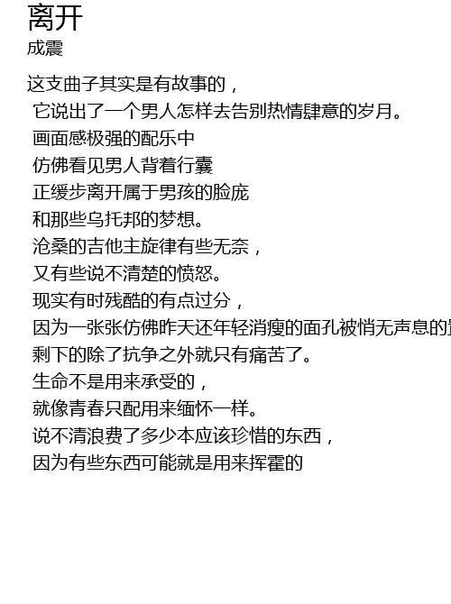 | 它说出了一个男人怎样去告别热情肆意的岁月。 | |