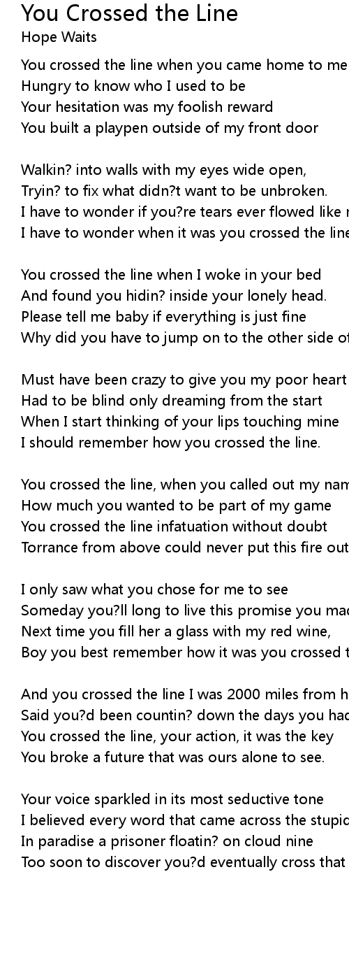 Boy you best remember how it was you crossed the line. |