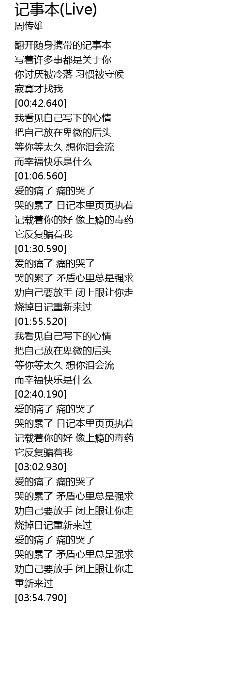 | [02:47.330] | 哭的累了 日记本里页页执着 |