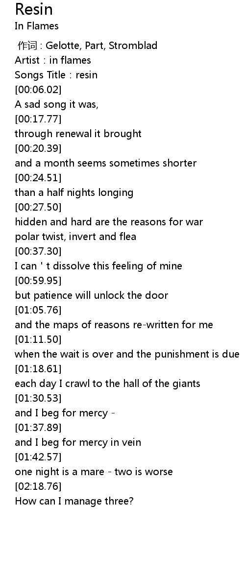 | [00:00.00] | 作词 : Gelotte, Part, Stromblad |