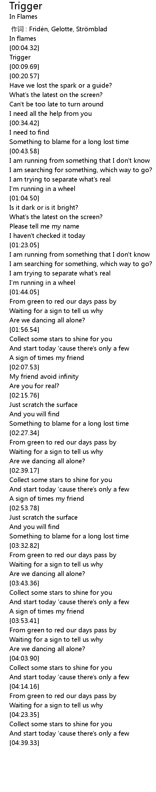 | [00:00.00] | 作词 : Fridén, Gelotte, Strömblad |