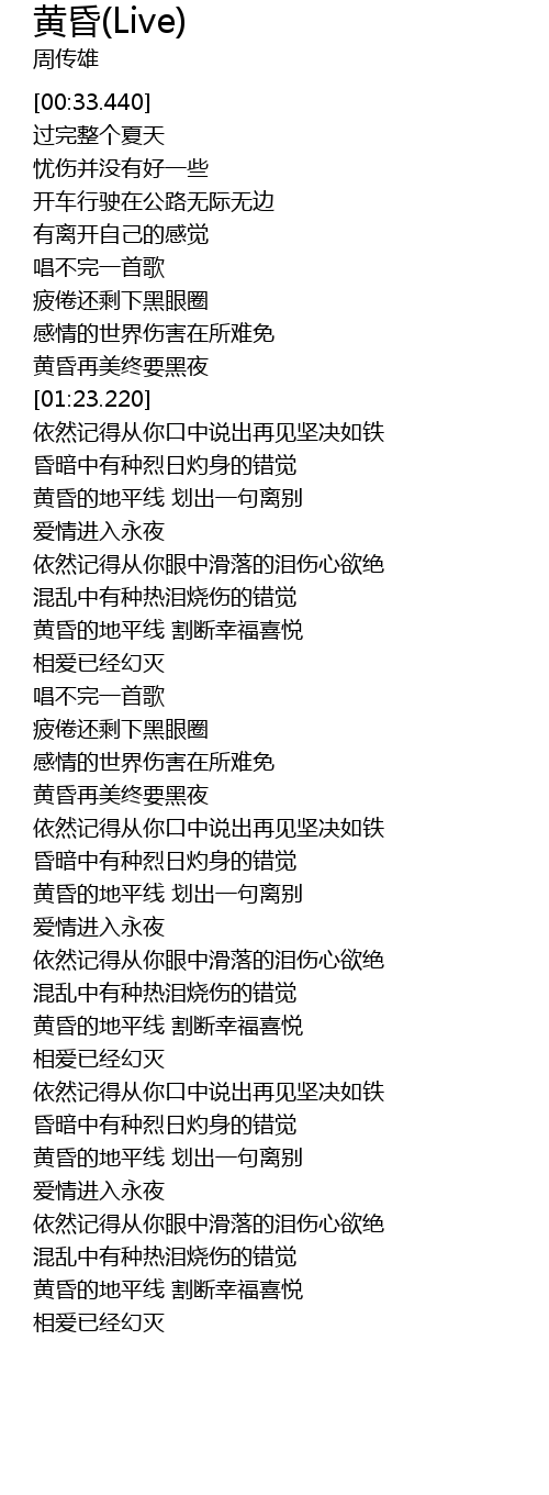 | [01:39.990] | 黄昏的地平线 划出一句离别 |