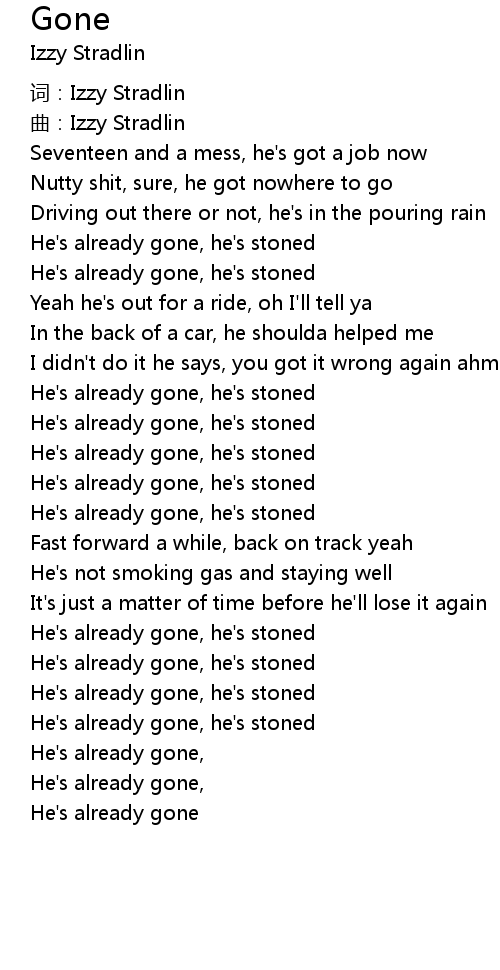 | [00:16.41] | Seventeen and a mess, he's got a job now |