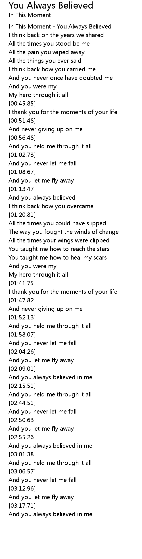 And you always believed in me |