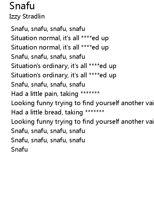 Snafu, snafu, snafu, snafu |