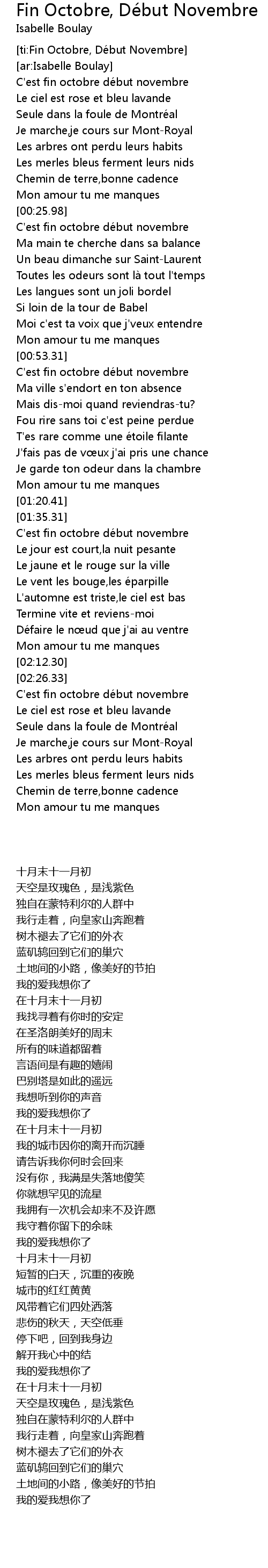 | [00:54.74] | C' est fin octobre dé but novembre |