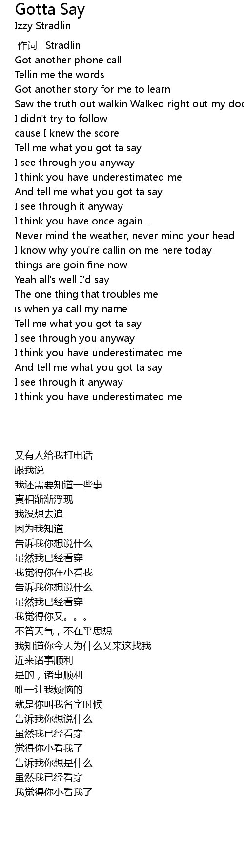 | Song | Gotta Say |