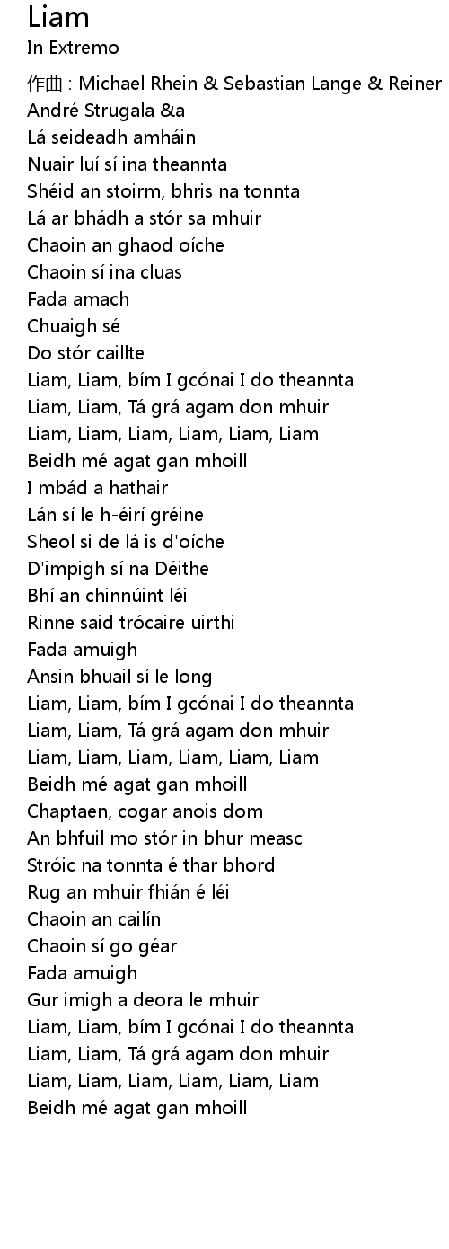| Liam, Liam, bí m I gcó nai I do theannta | |