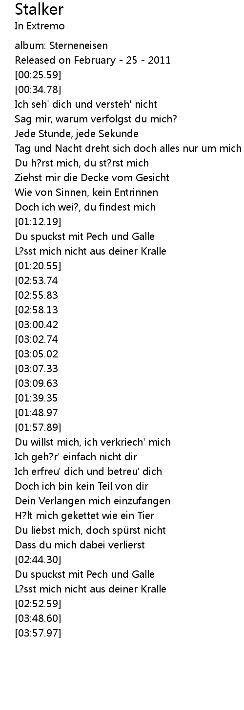 | [02:48.77] | L?sst mich nicht aus deiner Kralle |