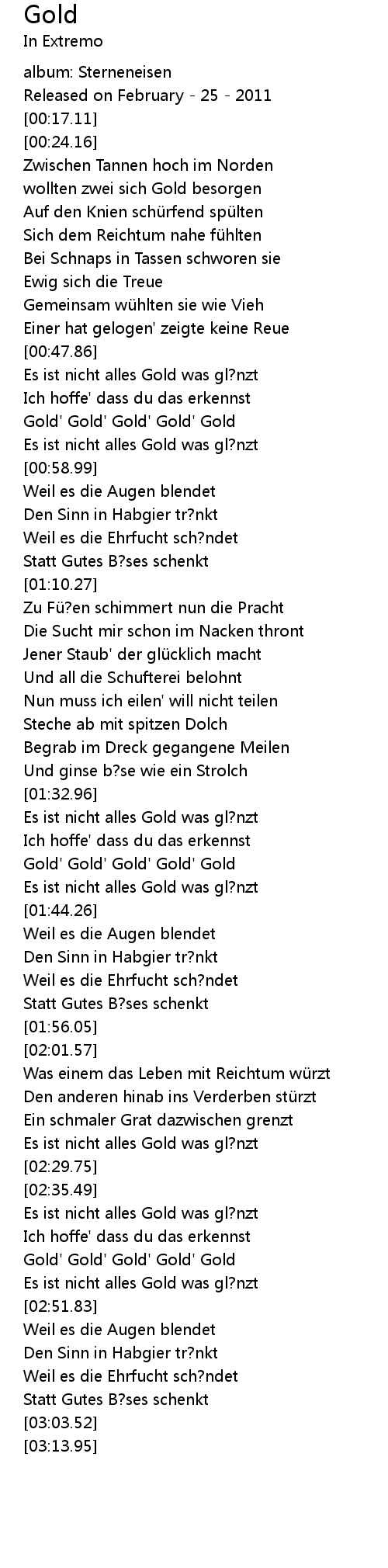 | [01:41.95] | Es ist nicht alles Gold was gl? nzt |