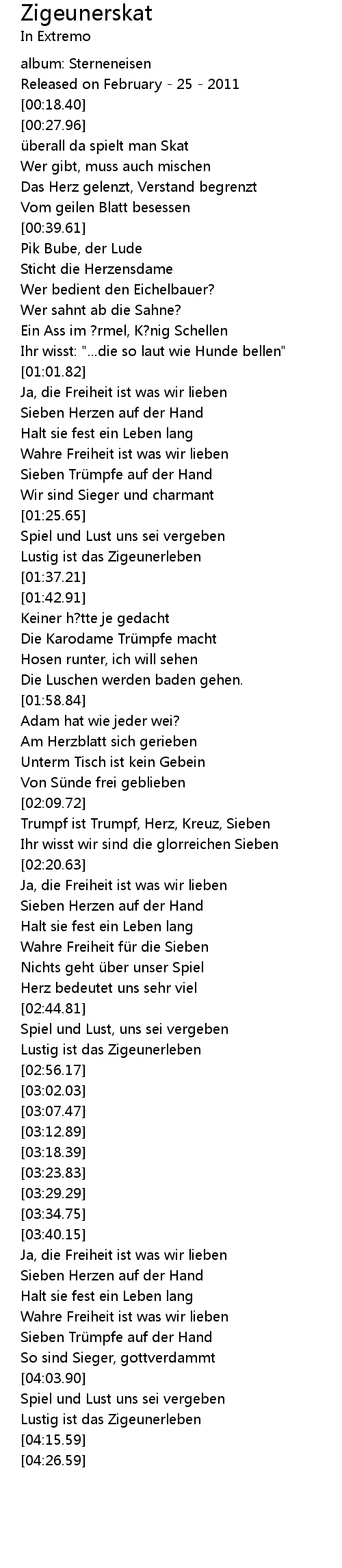 | [00:51.59] | Ein Ass im ? rmel, K? nig Schellen |