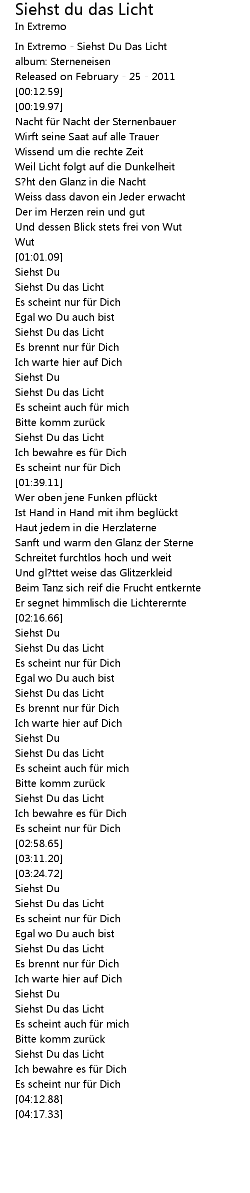 | [00:01.00] | In Extremo Siehst Du Das Licht |