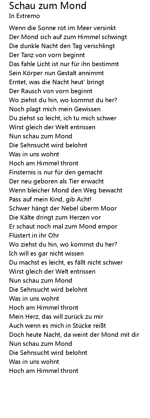| Song | Schau zum Mond |