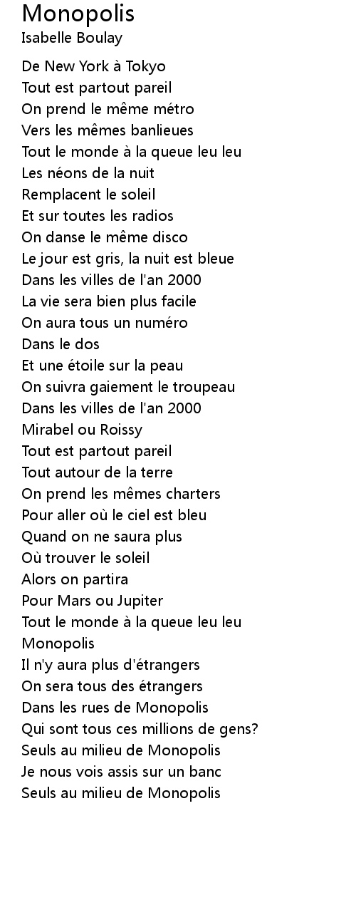 | Song | Monopolis |