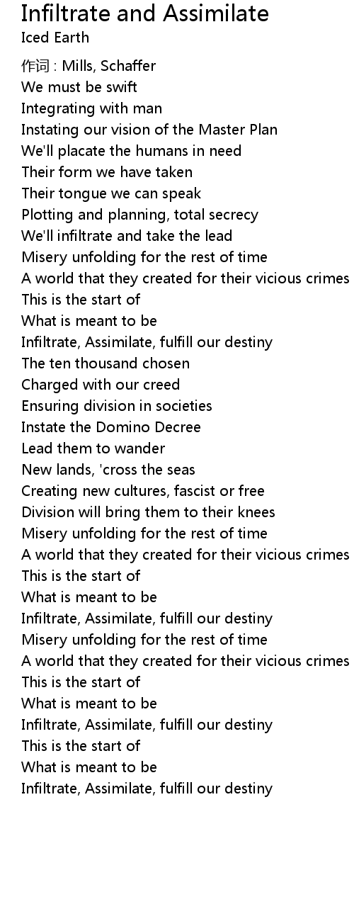 | Infiltrate, Assimilate, fulfill our destiny | |