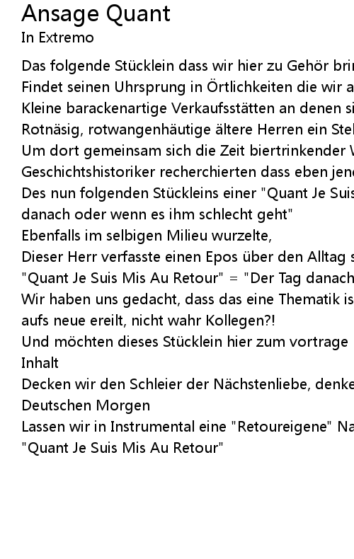 | Song | Ansage Quant |
