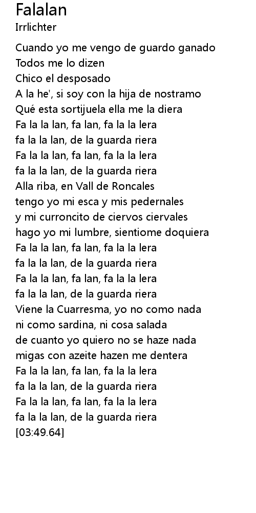 | [01:46.19] | fa la la lan, de la guarda riera |