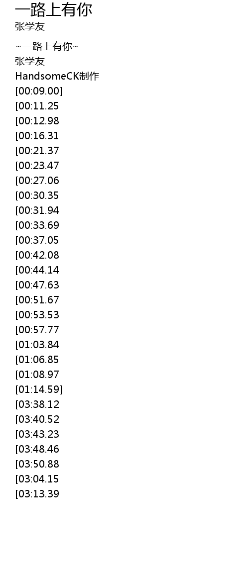 | [03:58.87][03:38.12][02:48.90][01:15.33] | 一路上有你 |