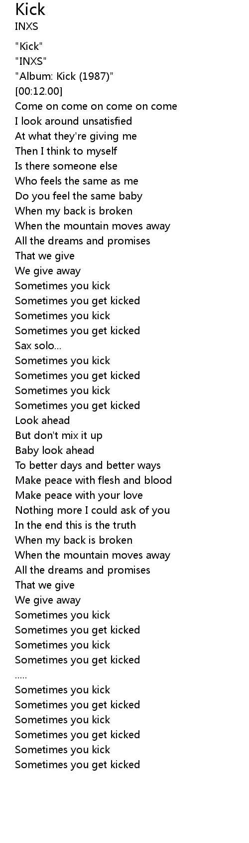 | [00:08.00] | "Album: Kick (1987)" |