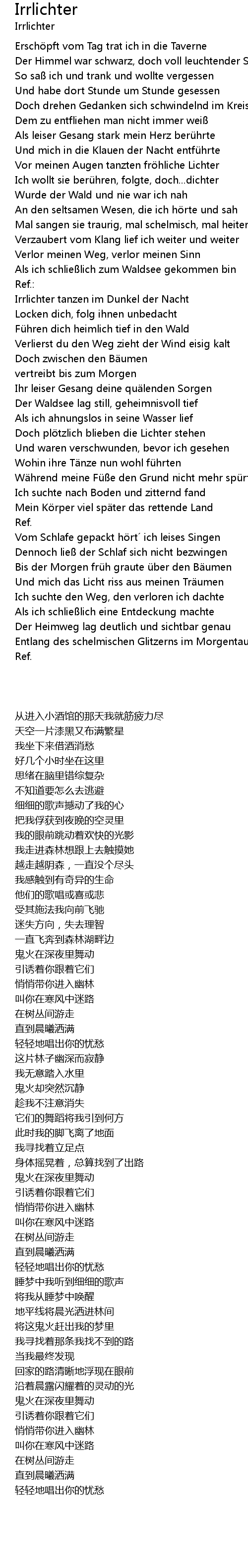 | Verlor meinen Weg, verlor meinen Sinn | |