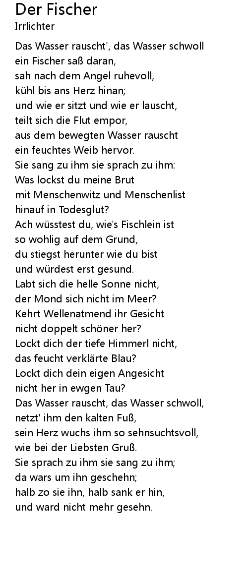 | Ach wü sstest du, wie' s Fischlein ist | |