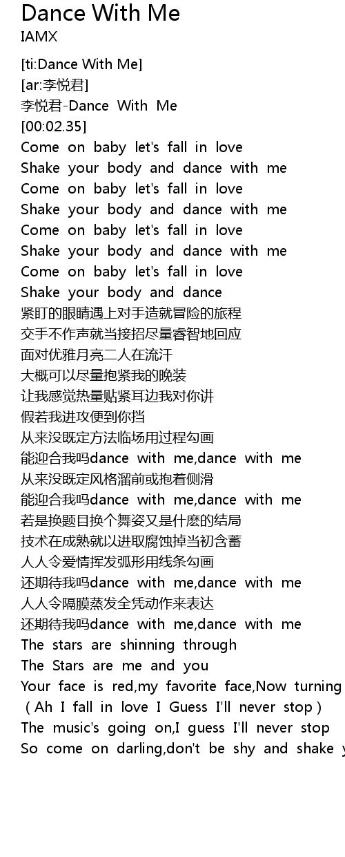 | [00:00.34] | lǐ yuè jūn Dance With Me |