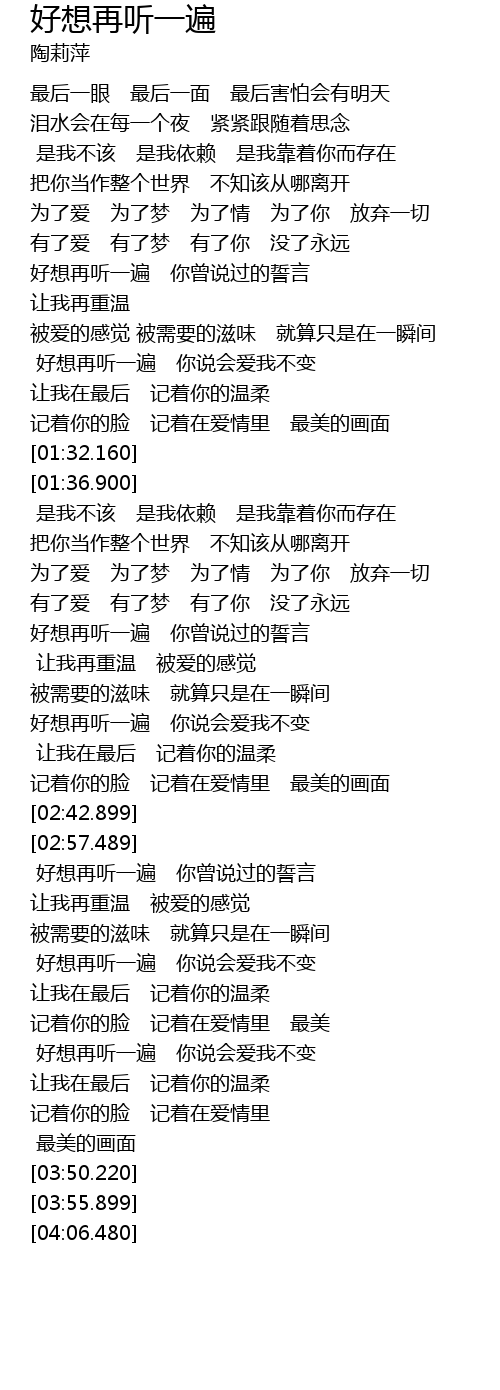 | [03:28.100] | 好想再听一遍 你说会爱我不变 |