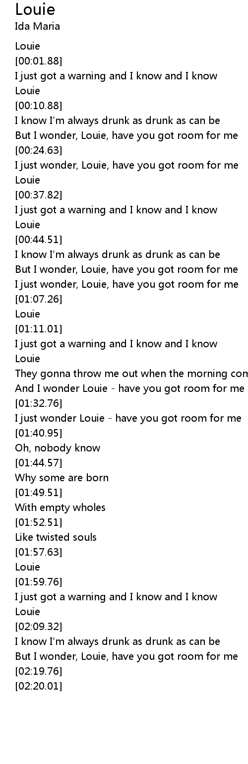 But I wonder, Louie, have you got room for me |