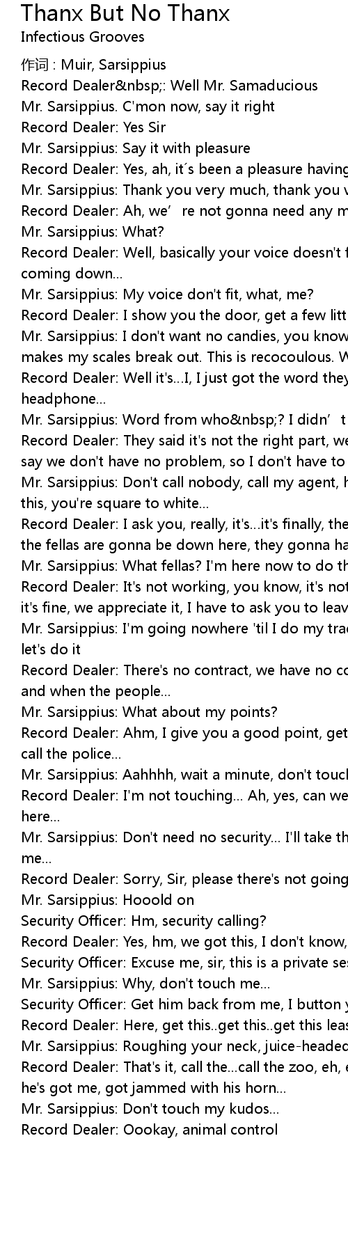 | Mr. Sarsippius: Don' t call nobody, call my agent, he will talk to you about this, you' re square to white... | |