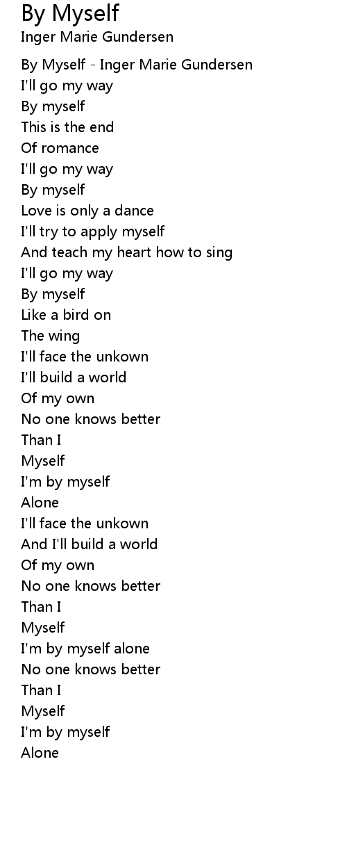 | [00:02.735] | By Myself - Inger Marie Gundersen |