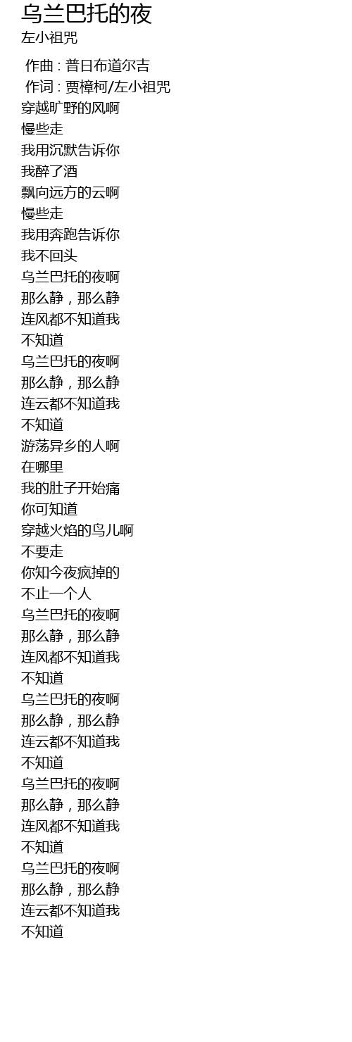 | [03:01.250] | 乌兰巴托的夜啊 |