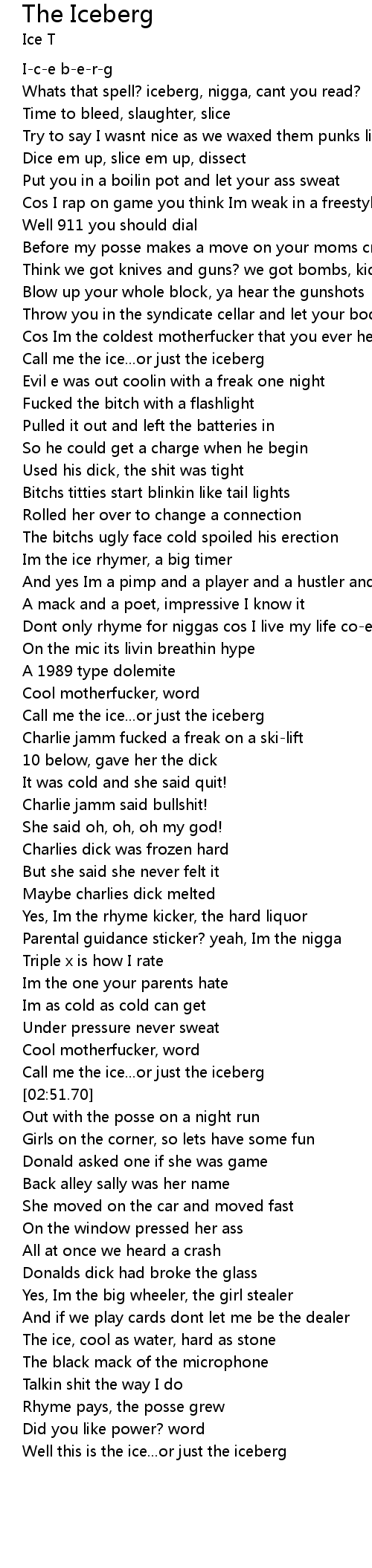 Whats that spell? iceberg, nigga, cant you read? |