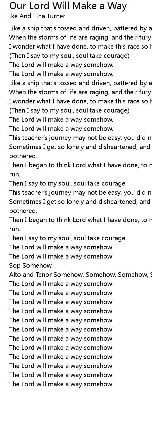 Our Lord Will Make a Way Lyrics