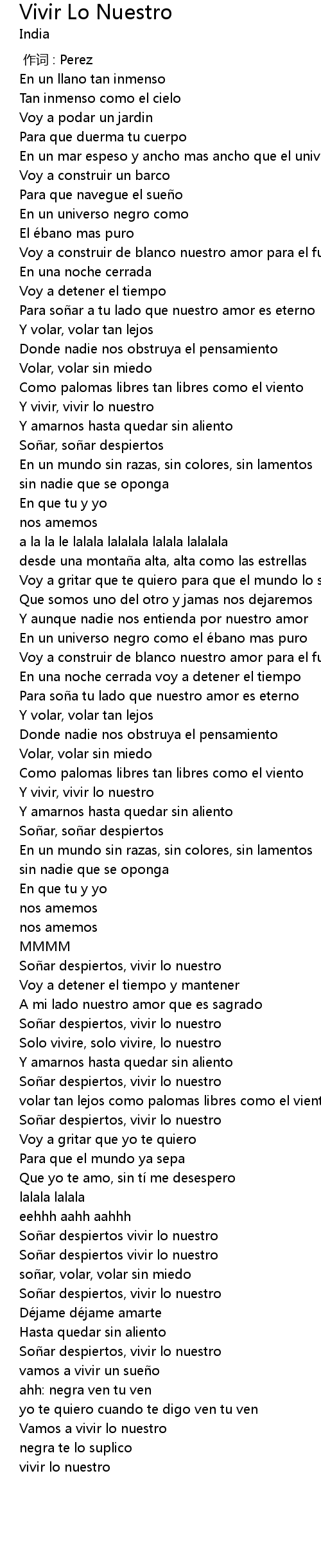 | [04:18.03] | Solo vivire, solo vivire, lo nuestro |