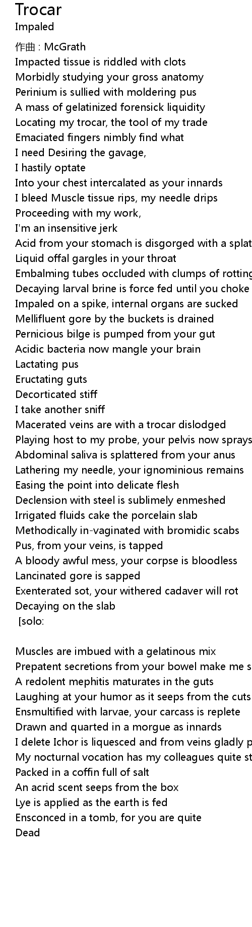 | I take another stab [solo: "The Mortician's Sword" by L.d. Muerte] [solo: "Lachrimose Germentation" by S.C. McGrath] | |
