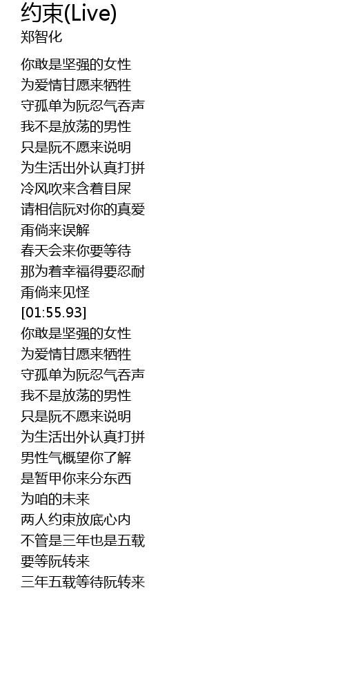| [01:42.64] | 那为着幸福得要忍耐 |