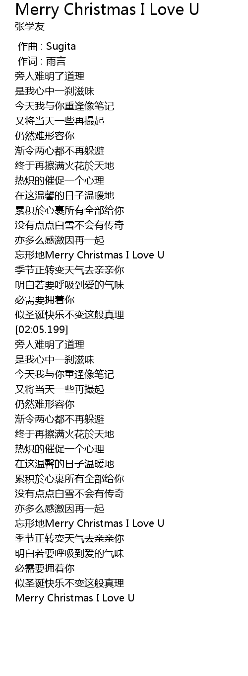 | [01:43.199] | wang xing di Merry Christmas I Love U |