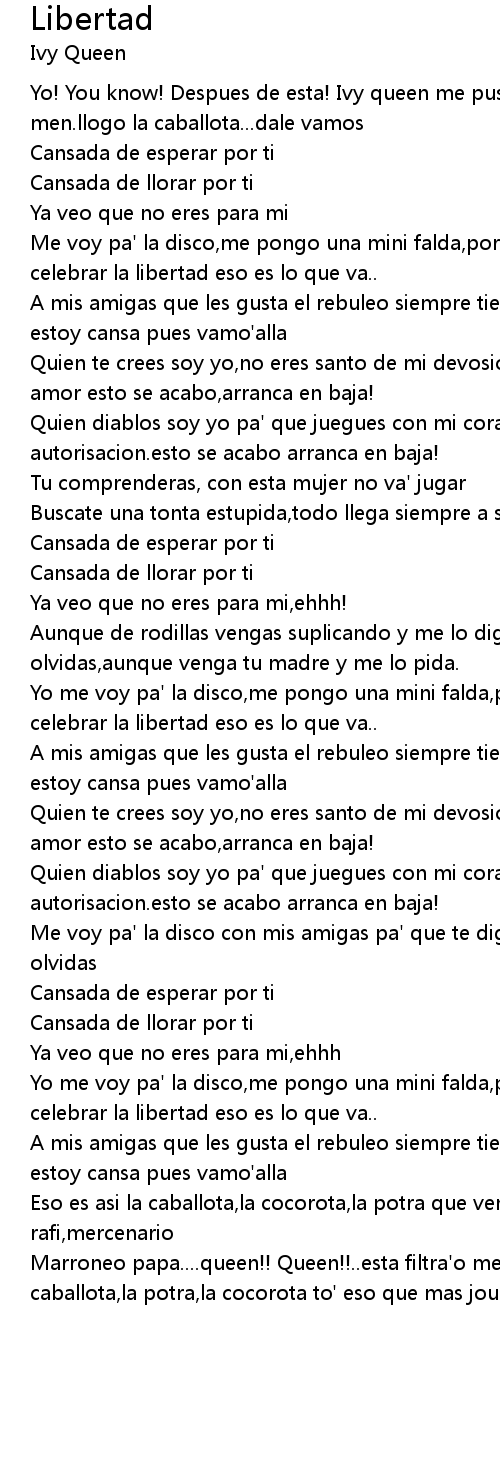 | Yo! You know! Despues de esta! Ivy queen me puse un chaleco prueba e' balas men.llogo la caballota...dale vamos | |