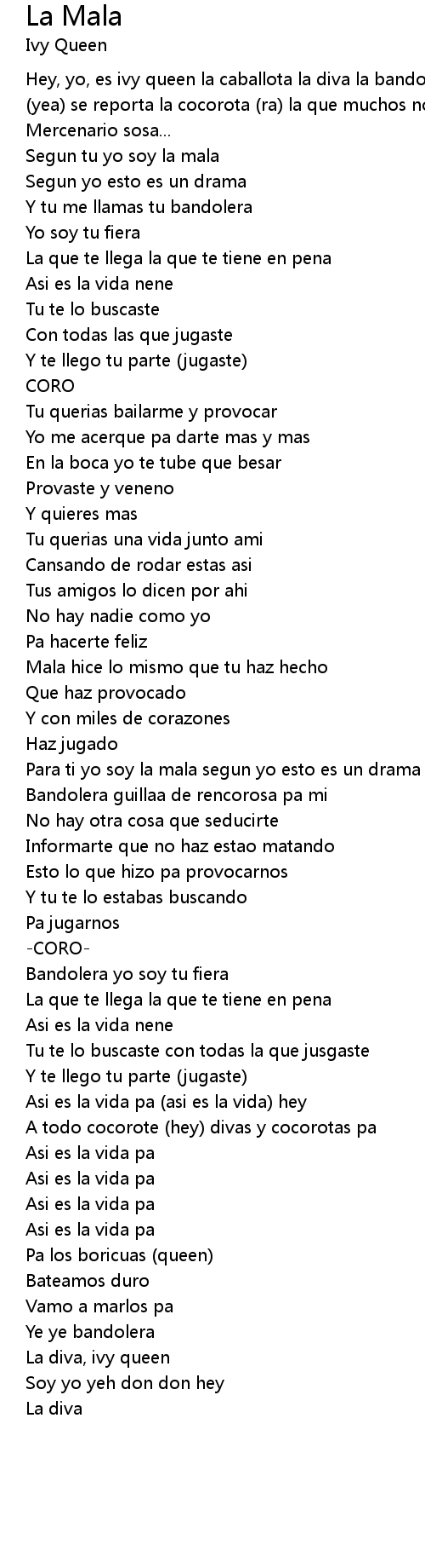 | Hey, yo, es ivy queen la caballota la diva la bandolera | |
