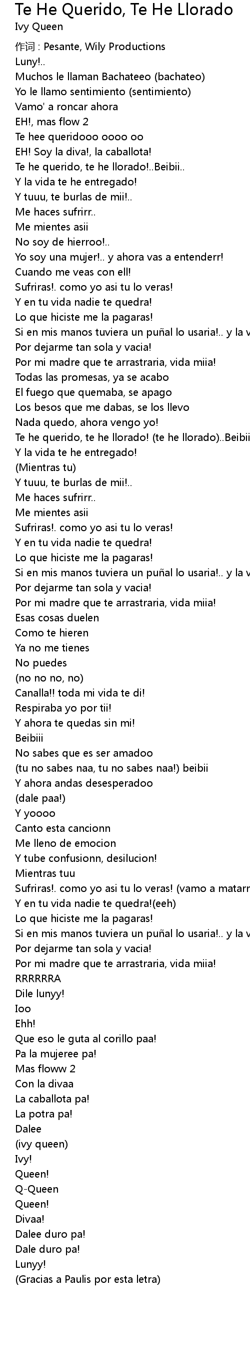 | Te he querido, te he llorado! (te he llorado)..Beibii.. | |