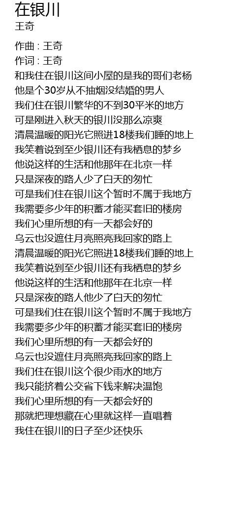 | 可是我们住在银川这个暂时不属于我地方 | |