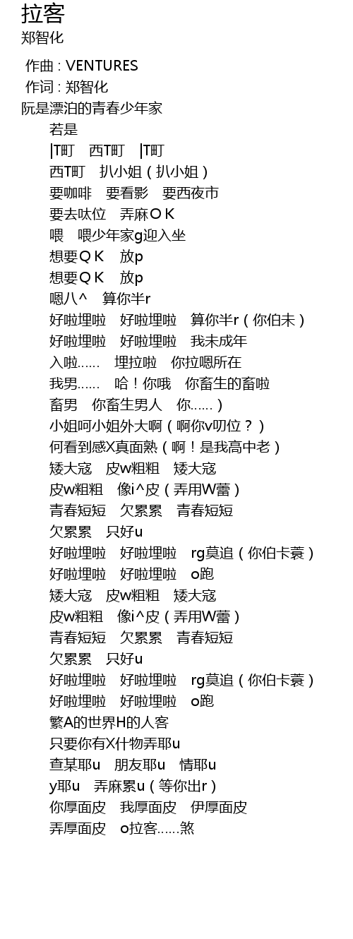 | [00:01.00] | 作词 : 郑智化 |