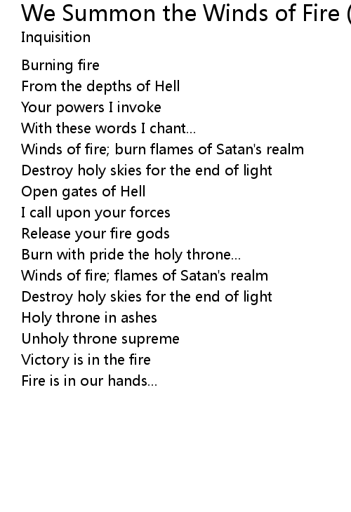 | Winds of fire; burn flames of Satan's realm | |