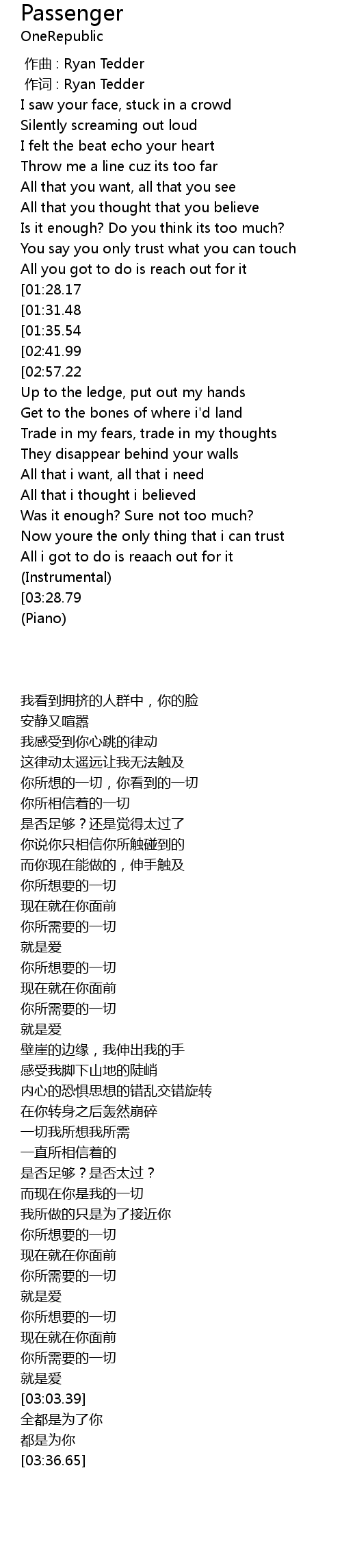 | [00:01.000] | zuò cí : Ryan Tedder |