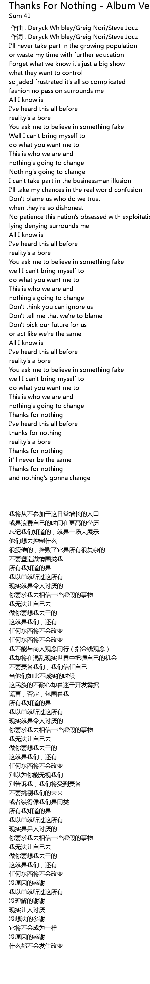 | [00:01.000] | 作词 : Deryck Whibley/Greig Nori/Steve Jocz |