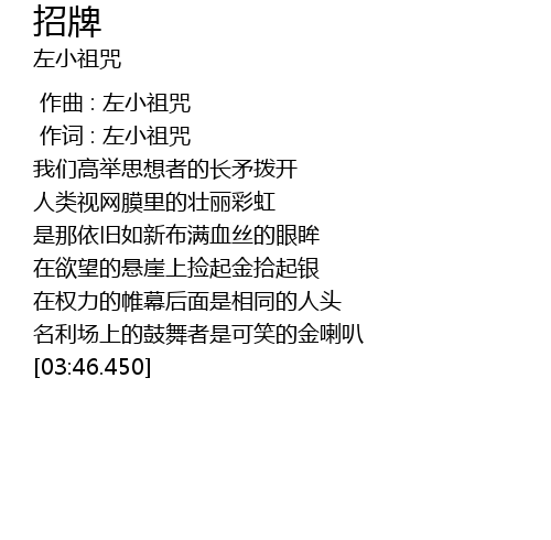 | [03:19.790] | 我们高举思想者的长矛拨开 |