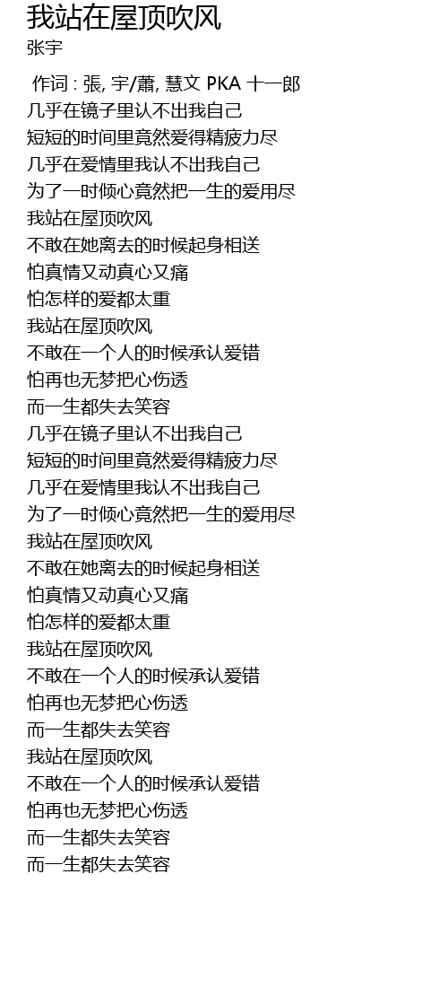 | [03:18.32] | wǒ zhàn zài wū dǐng chuī fēng |